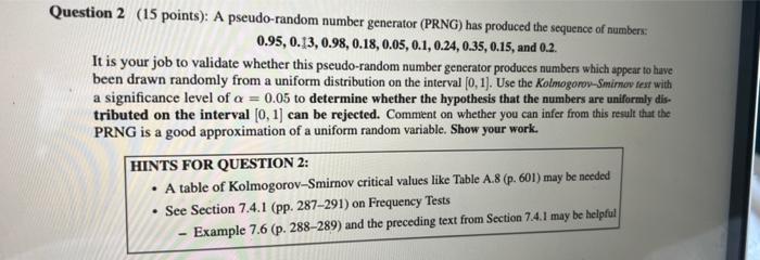 Solved 2uestion 2 15 Points A Pseudo Random Number Chegg Com